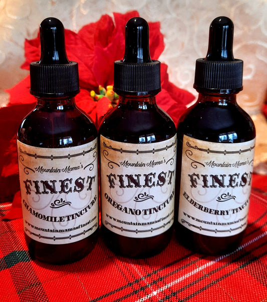 Wellness Bundle Trio with Elderberry, Oregano, and Chamomile Tinctures. Battle those pesky bugs this new year of cold and flu season!